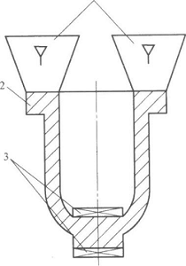 1-澆口杯(盆) 2-直澆道 3-橫澆道 4-內澆道